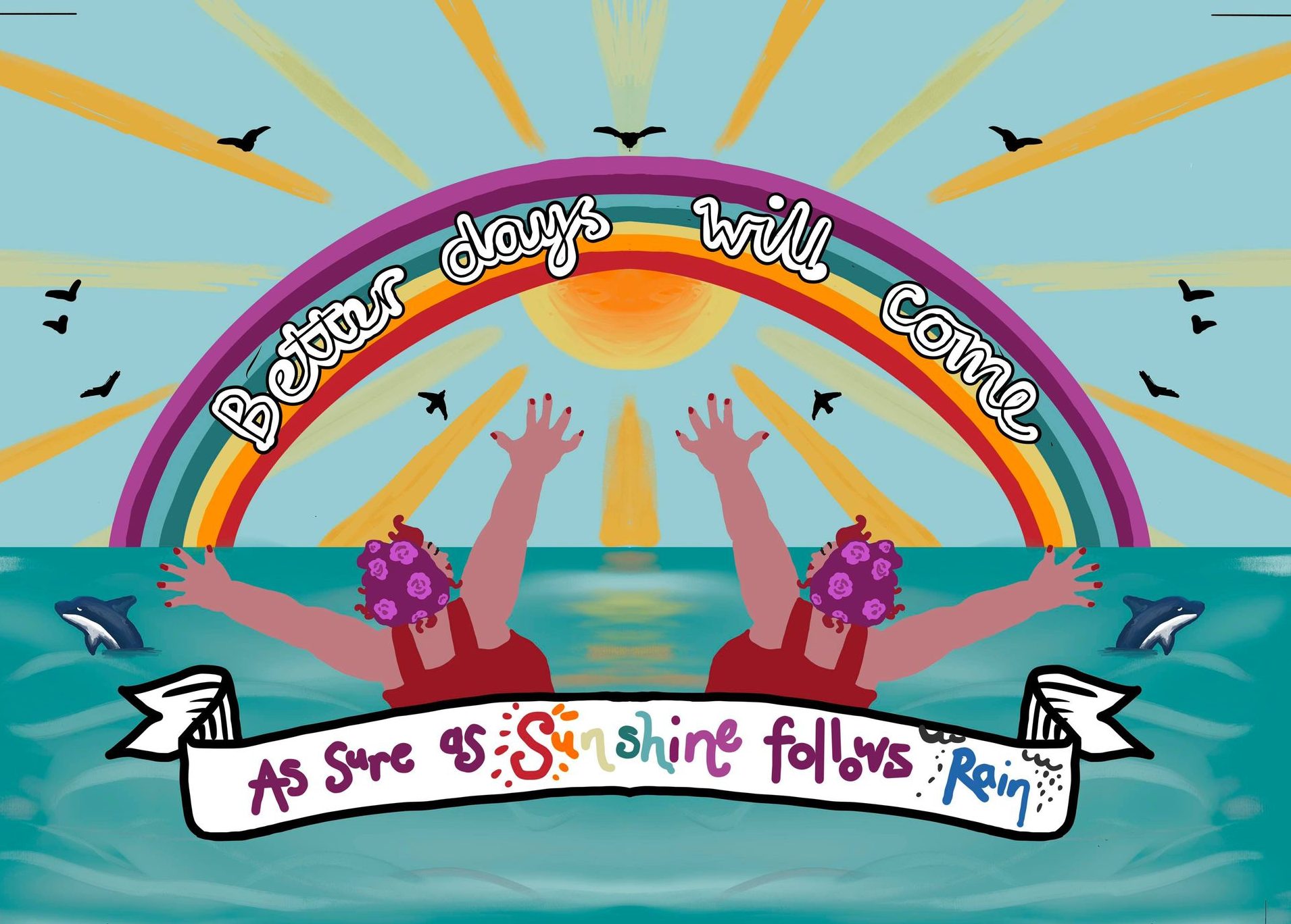 The group commissioned me to design three postcards, each one a positive message of hope, which could be sold with some of the profits going to their cause, and I was happy to oblige. I’d been teaching myself to use the Procreate app do develop my digital drawing and designs over this time on my Ipad and withe help of Lisa Bardot and her amazing online workshops – one of the benefits of endless days without work